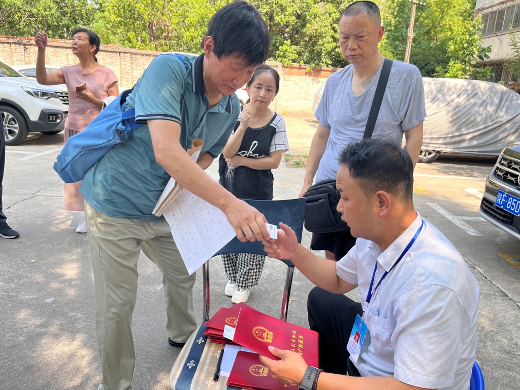 汉台区花台小区8号楼由于历史原因,不动产登记工作一度陷入僵局,产权证书成为悬在30户业主心头多年的“老大难”问题。群众期盼早日拿到属于自己的“红本本”,解决落户、子女入学、房屋交易等现实困难。在市、区多部门的通力协作和高效运转下,停滞多年的不动产权登记工作取得突破性进展。张杰同志在单位的安排下,上门逐户收集登记资料,挨家挨户讲解政策,加班加点完成登记,逐户对比核对信息,在短短一个工作日完成了25户的登记业务。2025年8月4日,对汉台区花台小区8号楼的25户业主而言,是一个期盼已久的日子。市不动产登记中心周密筹备开展“送证上门”服务。张杰同志将《不动产权证书》送到每家每户时,业主们脸上流露出久违的微笑,困扰购房户多年的“心病”终于得到“治愈”。